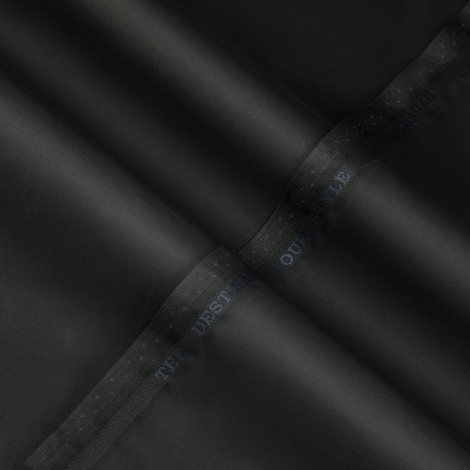 This is a premium cotton fabric with a smooth, finely woven texture and a soft, refined finish. It offers excellent breathability and comfort, giving a clean and elegant appearance. The fabric features a subtle sheen and a neatly finished selvedge with branded detailing, reflecting high quality and fine craftsmanship. Its durable structure and polished look make it suitable for those who value comfort and superior fabric quality.